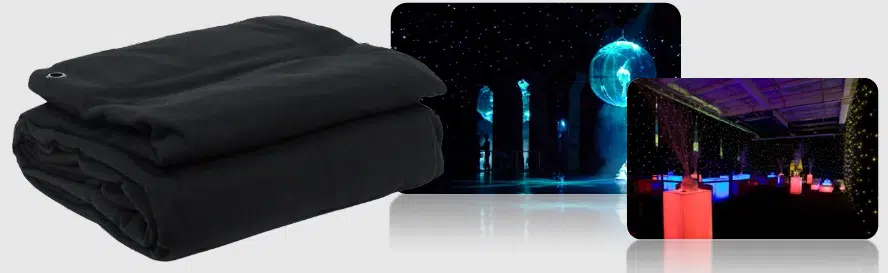 Stage Effect. Our size 7 meter x 6 meter “Black Magic Curtain”.
